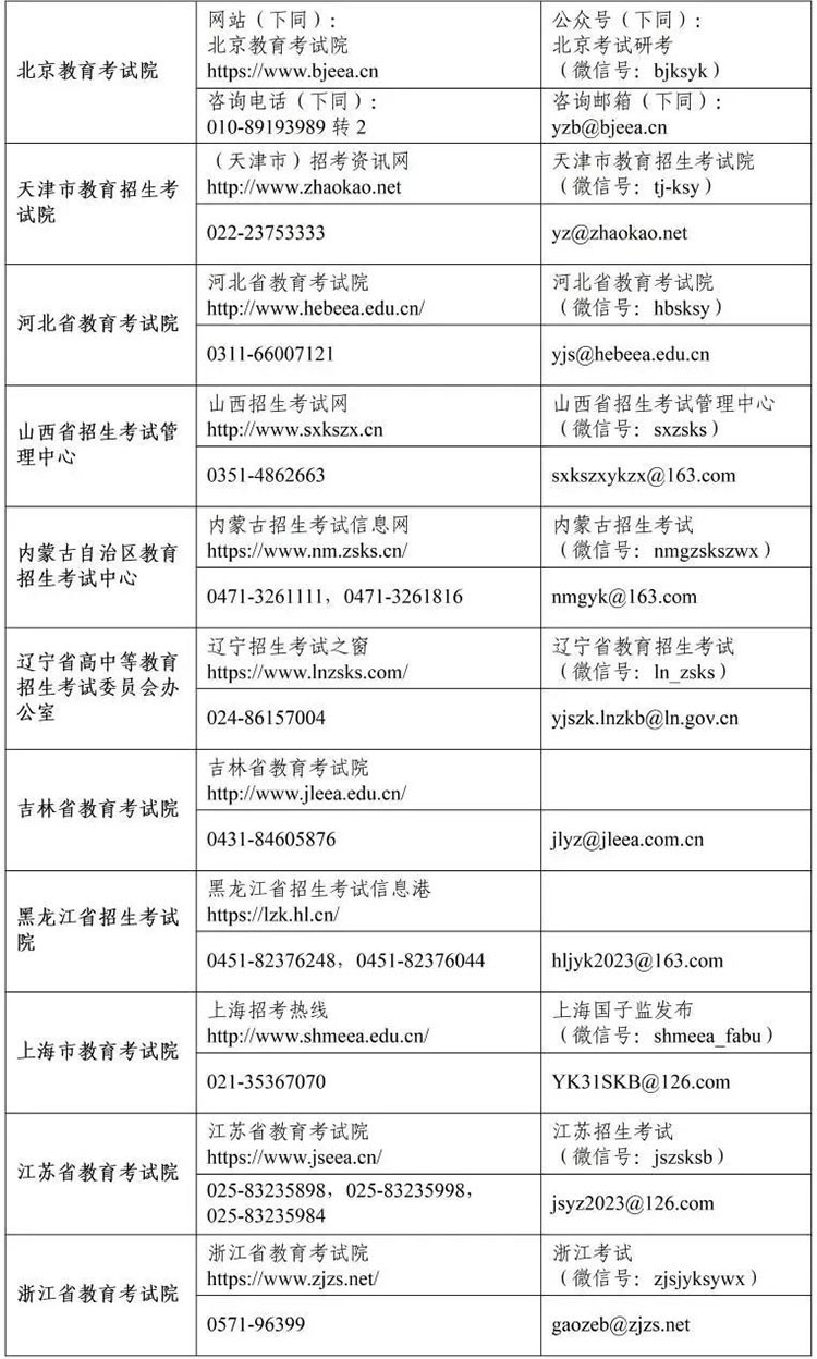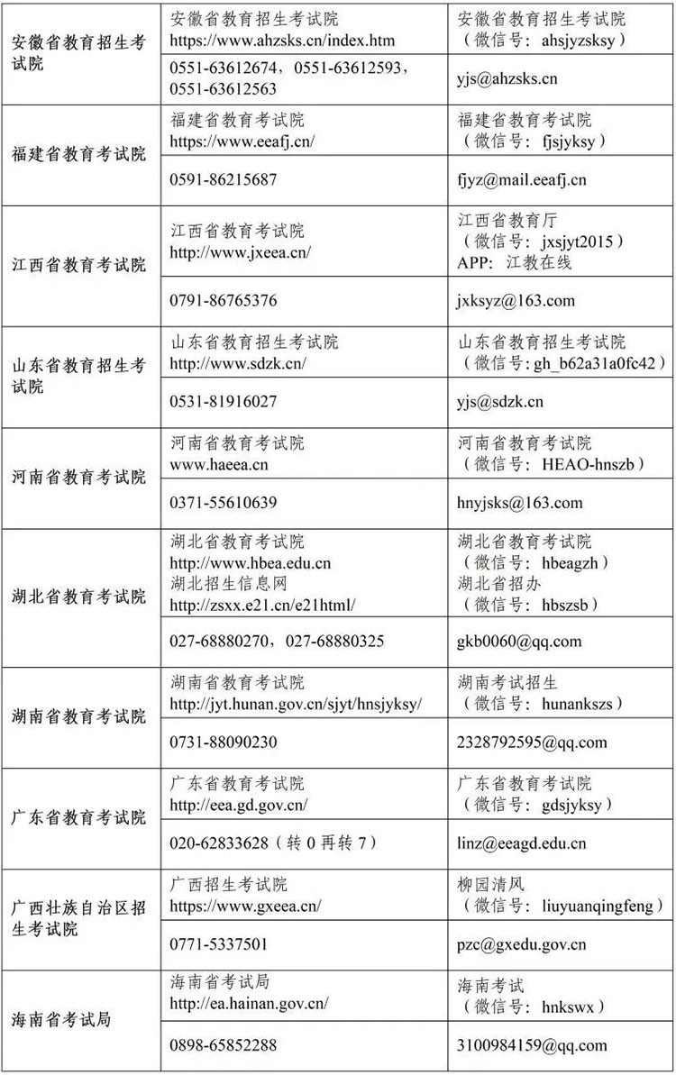 省級教育招生考試機構網(wǎng)站、公眾號、咨詢電話和郵箱等信息匯總