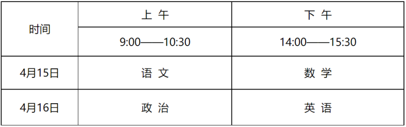 1.取得試點(diǎn)高校文化課單考資格的考生,須參加全國統(tǒng)一組織的“運(yùn)動(dòng)訓(xùn)練、武術(shù)與民族傳統(tǒng)體育專業(yè)”招生文化考試(報(bào)名辦法詳見“中國運(yùn)動(dòng)文化教育網(wǎng)”或“體教聯(lián)盟 APP”)??荚嚂r(shí)間及科目如下(考點(diǎn)及有關(guān)事宜另行通知):