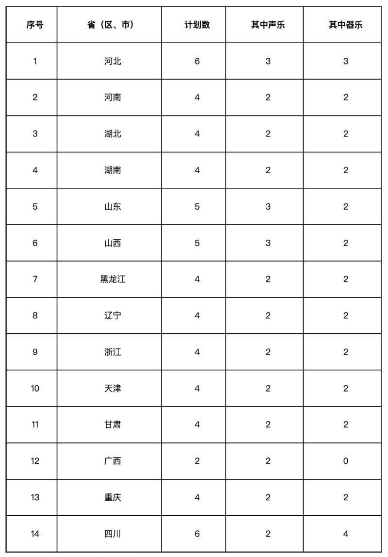 1、2023年學校音樂表演專業(yè)全國招生計劃為60人。