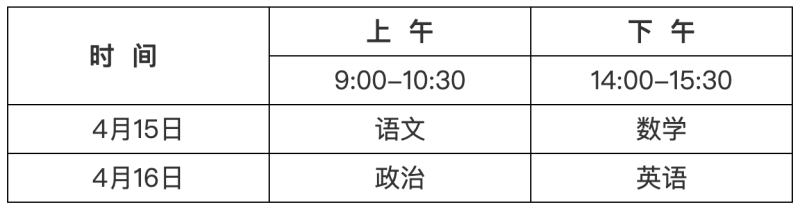 考生須參加高考報(bào)名所在地省級(jí)招生考試機(jī)構(gòu)組織的文化考試??荚嚳颇浚赫Z(yǔ)文、數(shù)學(xué)、政治、英語(yǔ)四科,每科滿分為150分,四科滿分600分。