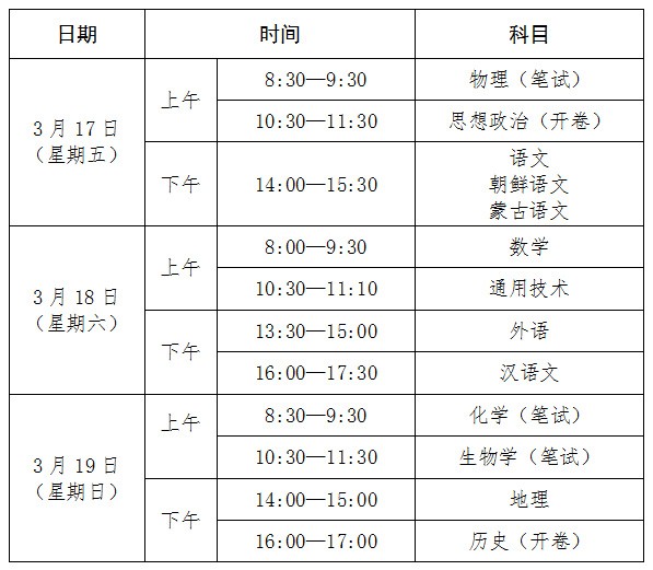 經(jīng)研究決定2022年下半年我省普通高中學(xué)業(yè)水平合格性考試時(shí)間調(diào)整至2023年3月17日-19日進(jìn)行,具體考試時(shí)間安排如下: