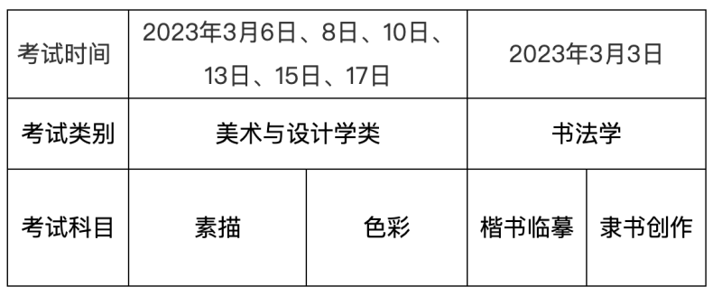 2.書法學本科專業(yè)??季€下復試僅安排一場,時間為3月3日。