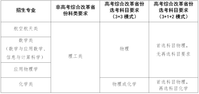 各招生專業(yè)、招生科類和高考綜合改革省份選考科目要求如下:根據(jù)各省高考綜合改革進(jìn)程、中學(xué)素質(zhì)教育推進(jìn)情況以及我校歷年招生情況,在陜西、北京、河北、江蘇、浙江、安徽、山東、河南、湖北、湖南、重慶、四川等省份招生,具體招生省份和分省招生計(jì)劃以強(qiáng)基計(jì)劃報(bào)名平臺(tái)公布為準(zhǔn)。