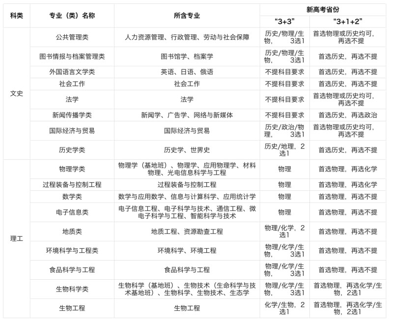 注:1.施行高考綜合改革省份考生,選考科目應(yīng)符合我校對考生所報專業(yè)(類)提出的選考科目要求。
