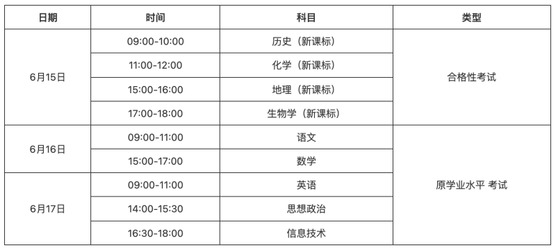 廣西2022年上半年普通高中學業(yè)水平考試定于6月15日至17日舉行。其中,15日舉行普通高中學業(yè)水平合格性考試(以下簡稱合格性考試),開考歷史、地理、化學、生物學等4門科目,報考對象主要為高中一年級學生;16日至17日舉行原普通高中學業(yè)水平考試(即高考綜合改革前實施的普通高中學業(yè)水平考試,以下簡稱原學業(yè)水平考試),開考語文、數(shù)學、英語、思想政治、信息技術(shù)等5門科目,報考對象主要為高中二年級學生和需要補考相應科目的高中三年級學生??荚嚪绞骄鶠楣P試,實行試卷和答題卡分離模式,具體考試時間安排如下: