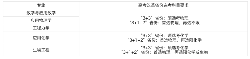 高考文化課加權成績=高考文化課成績+數學單科成績*N(其中:數學與應用數學專業(yè) N=0.5;應用物理學和工程力學專業(yè) N=0.2;應用化學、生物工程專業(yè)N=0。)