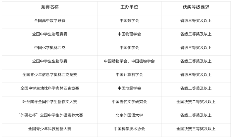 2.高中階段在以下競(jìng)賽中獲得至少一項(xiàng)獎(jiǎng)項(xiàng)的。
