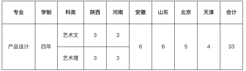 2023年我校藝術(shù)類產(chǎn)品設(shè)計專業(yè)面向陜西、河南、安徽、山東、北京、天津六?。ㄊ校┯媱澱猩?3名,具體分省計劃以各?。ㄊ校┱猩荚嚈C構(gòu)公布的招生計劃為準。