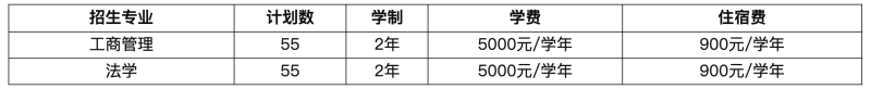 招生專業(yè)為工商管理和法學(xué)專業(yè),學(xué)制為兩年,招生計(jì)劃總數(shù)為110人。如表1所示(最終招生計(jì)劃以教育部批準(zhǔn)為準(zhǔn))。