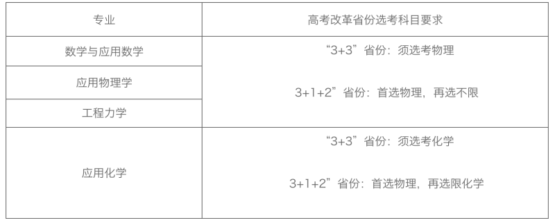 高考文化課加權(quán)成績=高考文化課成績+數(shù)學(xué)單科成績*N(其中:數(shù)學(xué)與應(yīng)用數(shù)學(xué)專業(yè) N=0.5;應(yīng)用物理學(xué)和工程力學(xué)專業(yè) N=0.2;應(yīng)用化學(xué)專業(yè)N=0。)