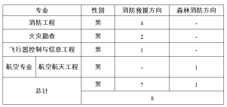 2、森林消防方向1人:航空航天工程專業(yè)1人。