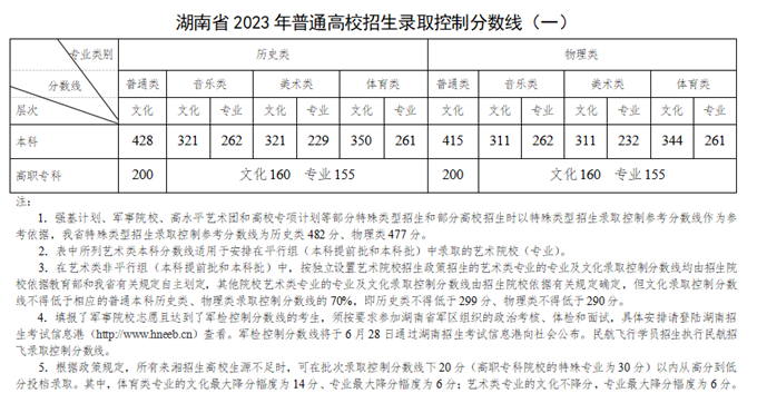 湖南省2023年高考招生各批次錄取控制分?jǐn)?shù)線是多少