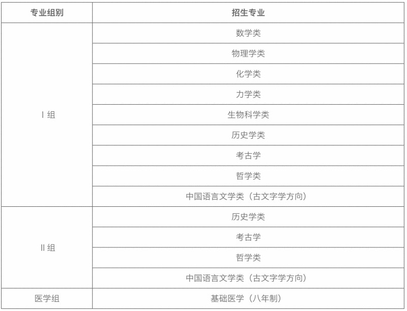 3.考生僅可選擇一個專業(yè)組進行報考,各專業(yè)組單列計劃,單獨排隊入圍及錄取。醫(yī)學組在北京大學醫(yī)學部招生代碼下錄取。