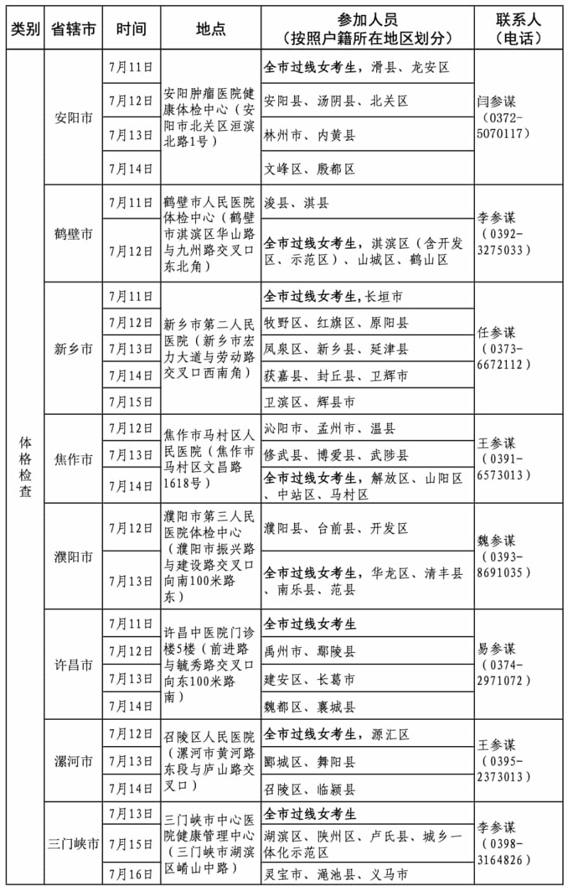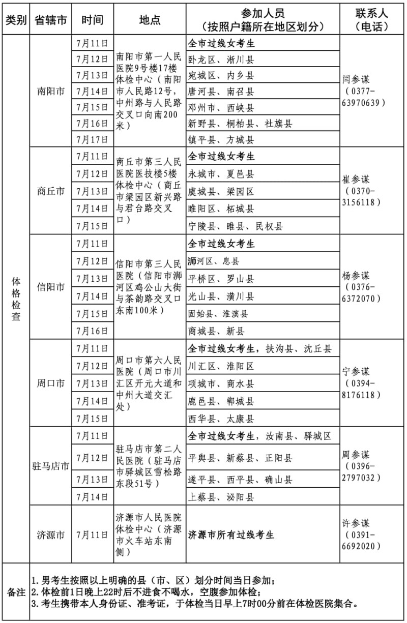 河南省2023年普通高校招生定向培養(yǎng)軍士政治考核、體格檢查日程表及咨詢舉報電話