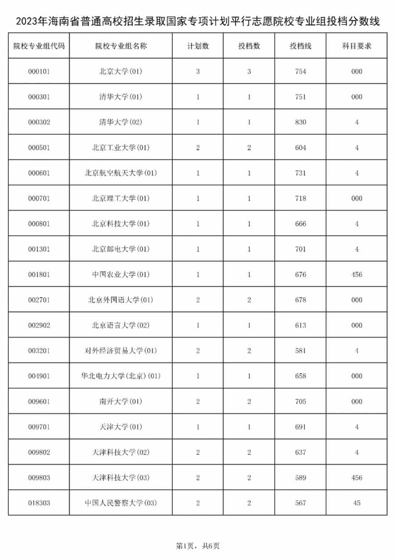 首頁> 高考資訊> 2023年海南省高考錄取國家專項(xiàng)計(jì)劃平行志愿院校專業(yè)組投檔分?jǐn)?shù)線是多少