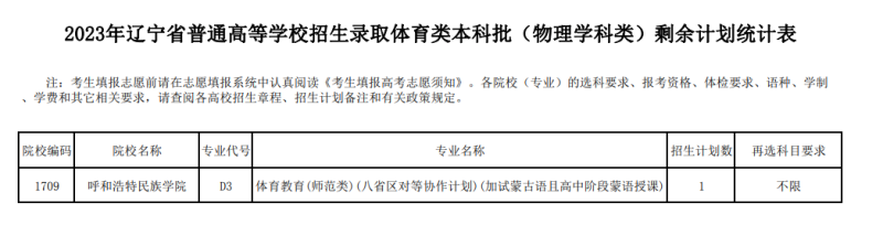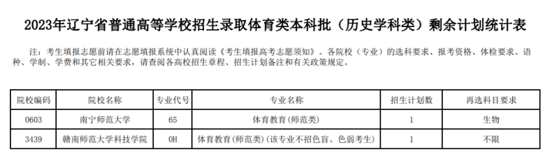 關于公布2023年遼寧省普通高等學校招生錄取體育類本科批剩余計劃和填報“征集志愿”有關問題的說明