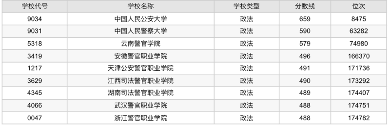 2023年全國(guó)警校分?jǐn)?shù)線排名前五的學(xué)校如下:
