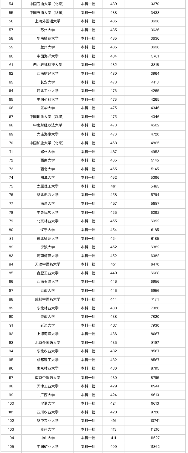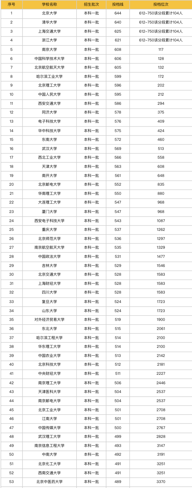 特招線:物理類514分、歷史類512分本科線:物理類465分、歷史類462分??凭€:物理類200分、歷史類200分