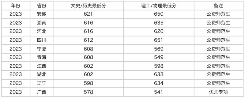 2023年東北師范大學免費師范生各省錄取分數(shù)線詳細如下: