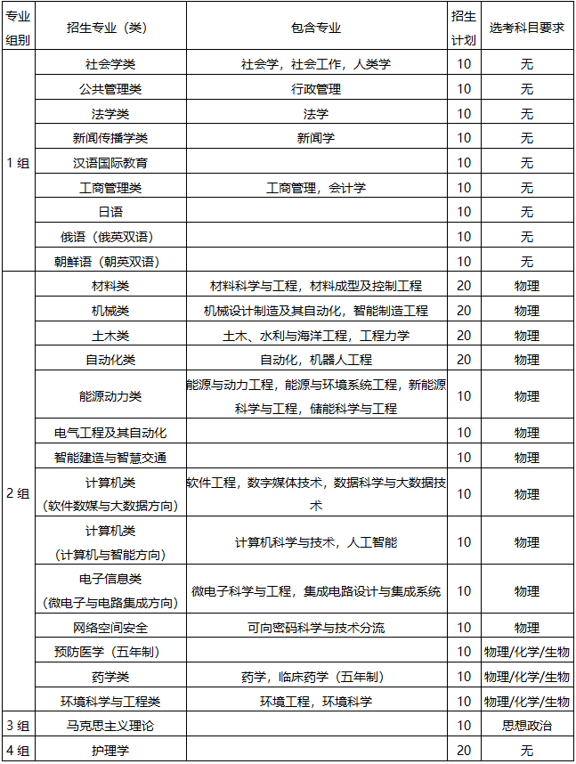 (一)獲得我校綜合評(píng)價(jià)招生資格且高考總成績(jī)不低于山東省特殊類型招生控制線的考生,按照山東省教育招生考試院要求在提前批次填報(bào)志愿。報(bào)考第4組專業(yè)的考生入校后原則上不允許轉(zhuǎn)入其他專業(yè)。