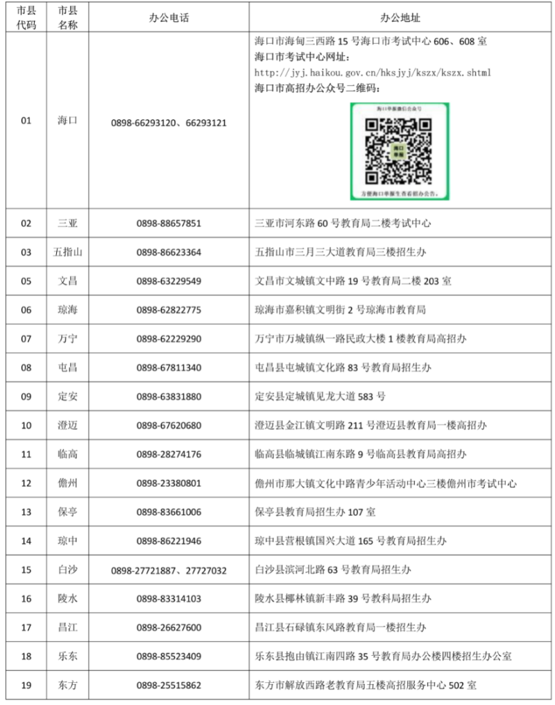 海南省2024年高考報名期間各市縣招生辦咨詢電話是多少?