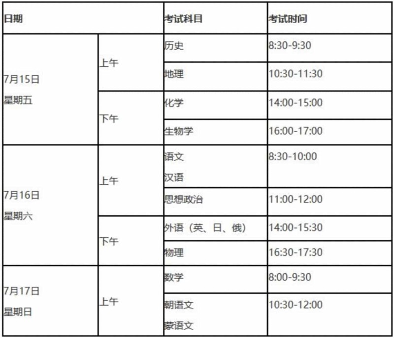 實行朝鮮語、蒙古語授課的民族中學考生必須選擇民族語言答卷類別。