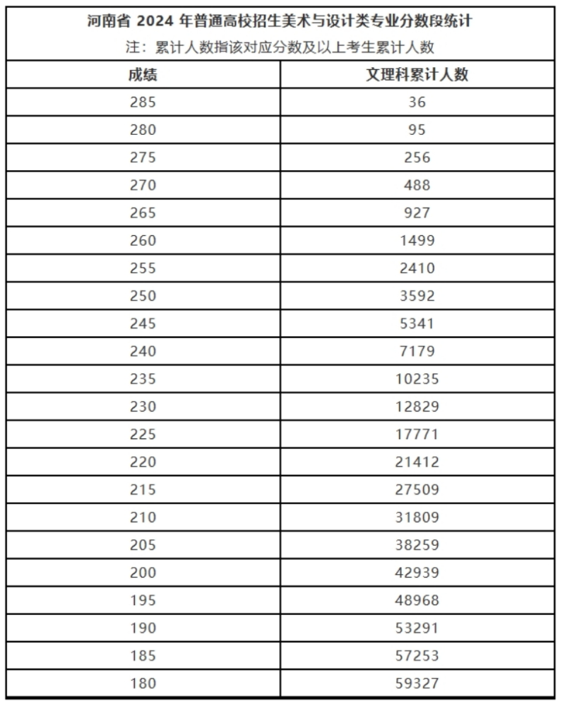 河南省2024年藝術(shù)類省統(tǒng)考美術(shù)與設(shè)計(jì)類專業(yè)一分一段表發(fā)布