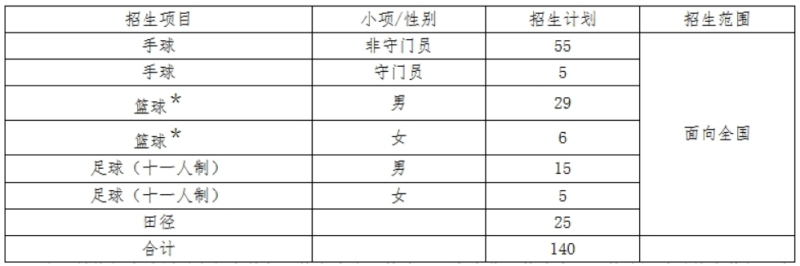 注:最終招生計劃以上級主管部門核定為準?;@球項目考生使用籃球或三人籃球運動員技術(shù)等級證書均可報名,按照籃球項目考試方法與評分標準參加籃球?qū)m椏荚嚒?/p>
