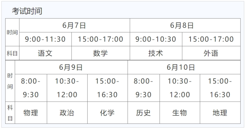 高考總共有4天,從6月7日開始,至6月10日結束。