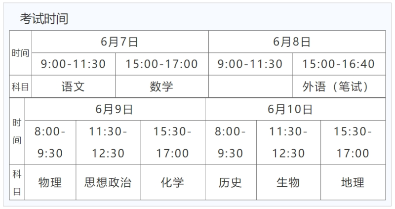 高考總共有4天,從6月7日開始,至6月10日結(jié)束?! ?/p>