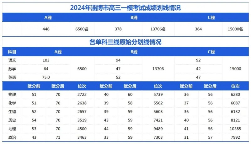 2024年高考淄博市一模考試高考分?jǐn)?shù)線公布