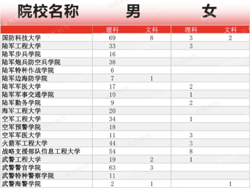中央軍委訓(xùn)練管理部軍事教育局公布了2024年軍隊院校招生計劃,在云南共招收人數(shù)如下: