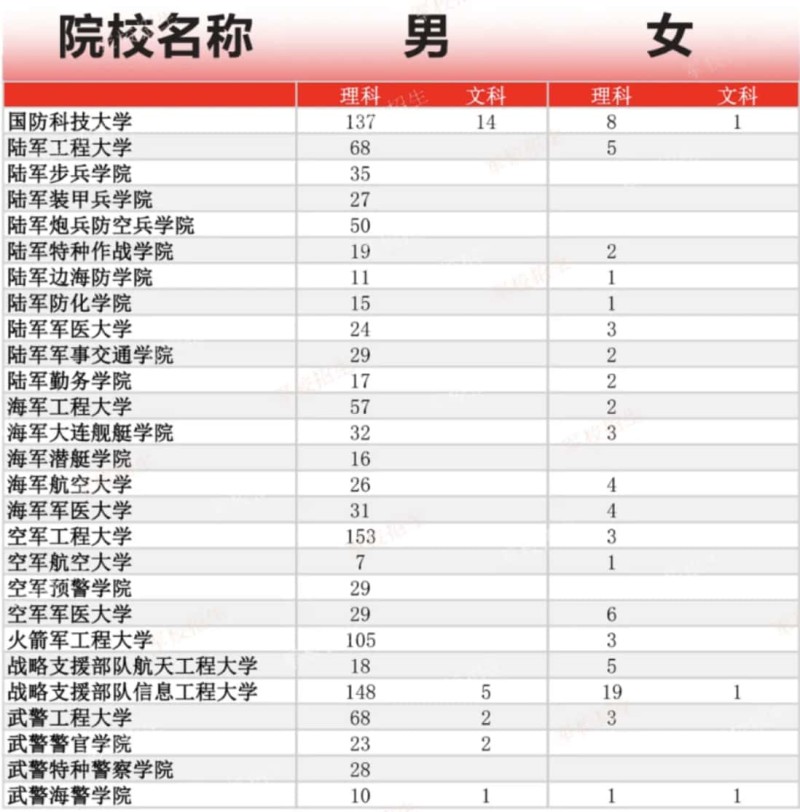 央軍委訓練管理部軍事教育局公布了2024年軍隊院校招生計劃,在河南共招收人數如下: