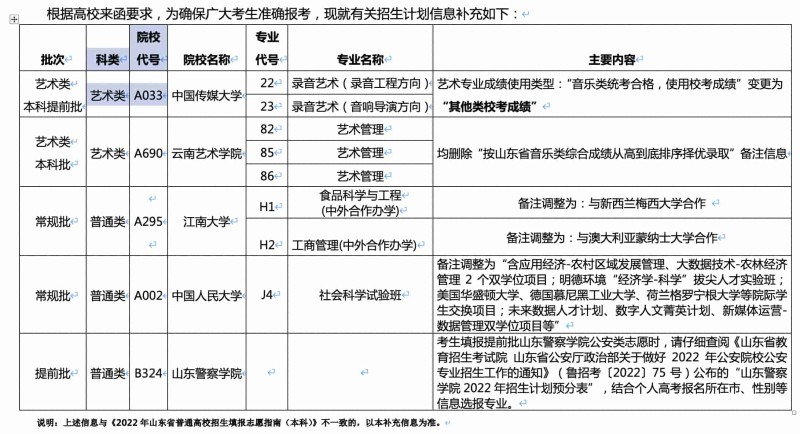 山東省2022年普通高等學(xué)校分專業(yè)招生計(jì)劃補(bǔ)充信息已經(jīng)發(fā)布,具體如下: