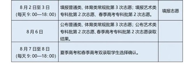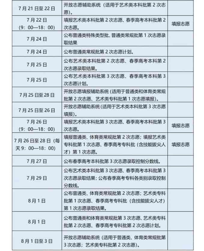 考生須按規(guī)定日期填報志愿,各批次志愿填報時間均為每天的9:00—18:00。各批次填報志愿具體時間