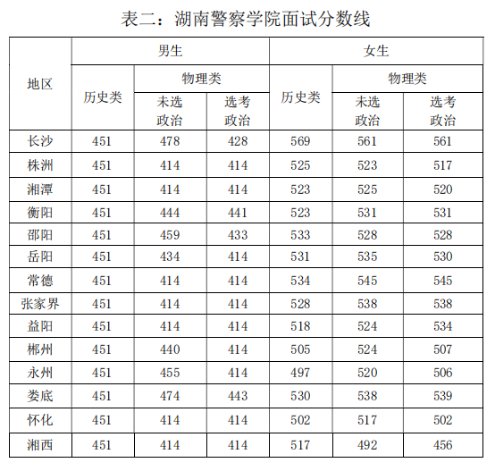 2022年公安普通高等院校在湖南招收公安專業(yè)學(xué)生面試分?jǐn)?shù)線公布