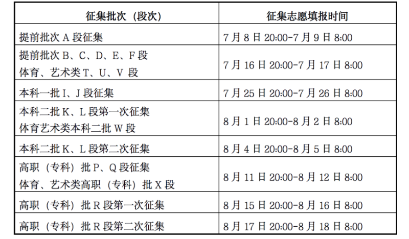 三、征集志愿時(shí)間安排