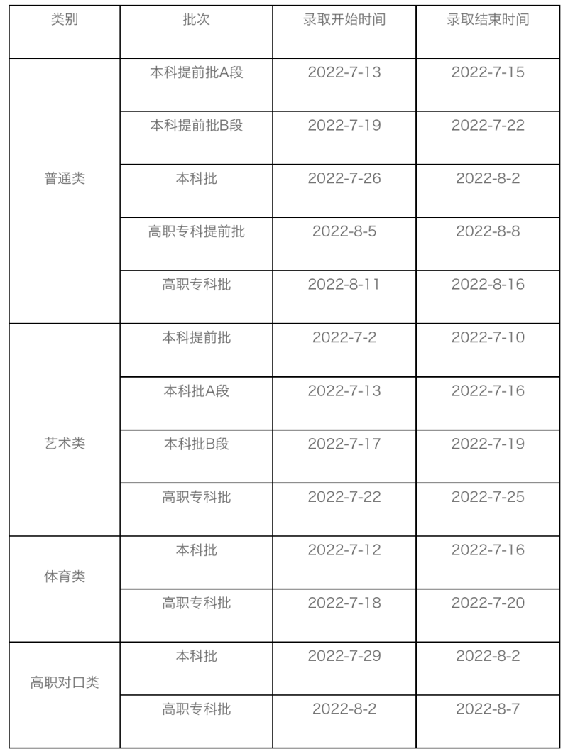 重慶市2022年普通高校招生錄取工作即將全面正式開(kāi)始,將于8月16日結(jié)束,各類(lèi)別各批次錄取進(jìn)程安排如下。