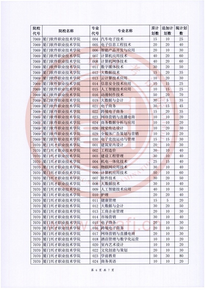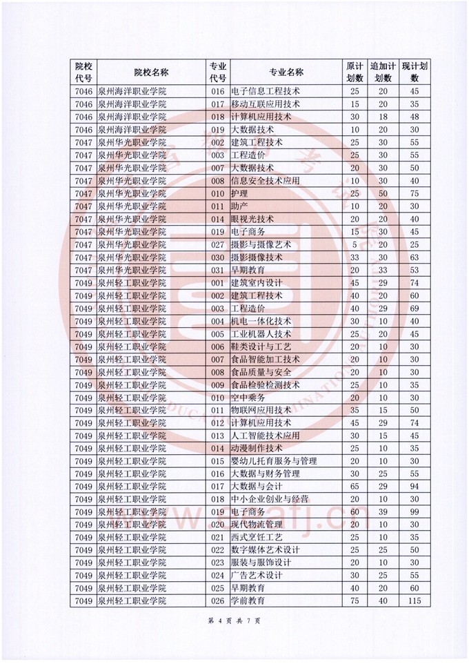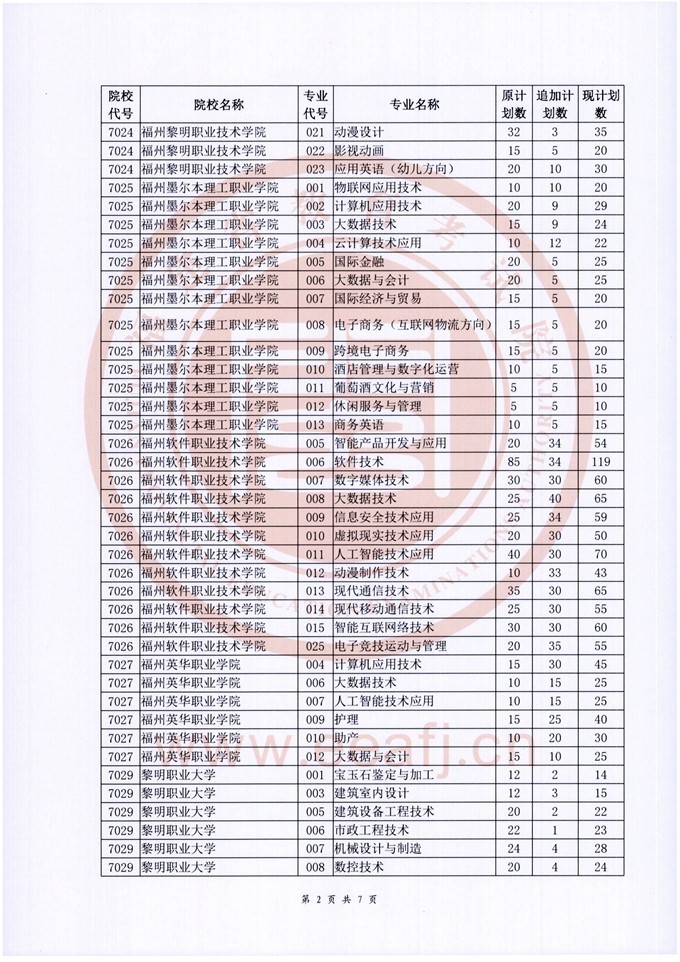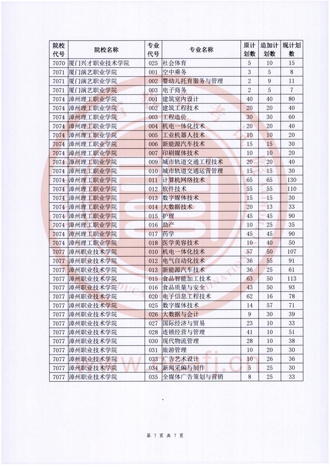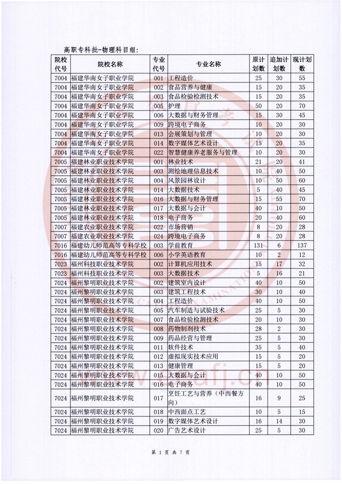 福建省2022年招生計(jì)劃本印發(fā)后,我省對省內(nèi)部分??聘咝?婆挝锢砜颇拷M的部分專業(yè)又追加下達(dá)了招生計(jì)劃,現(xiàn)公布如下:
