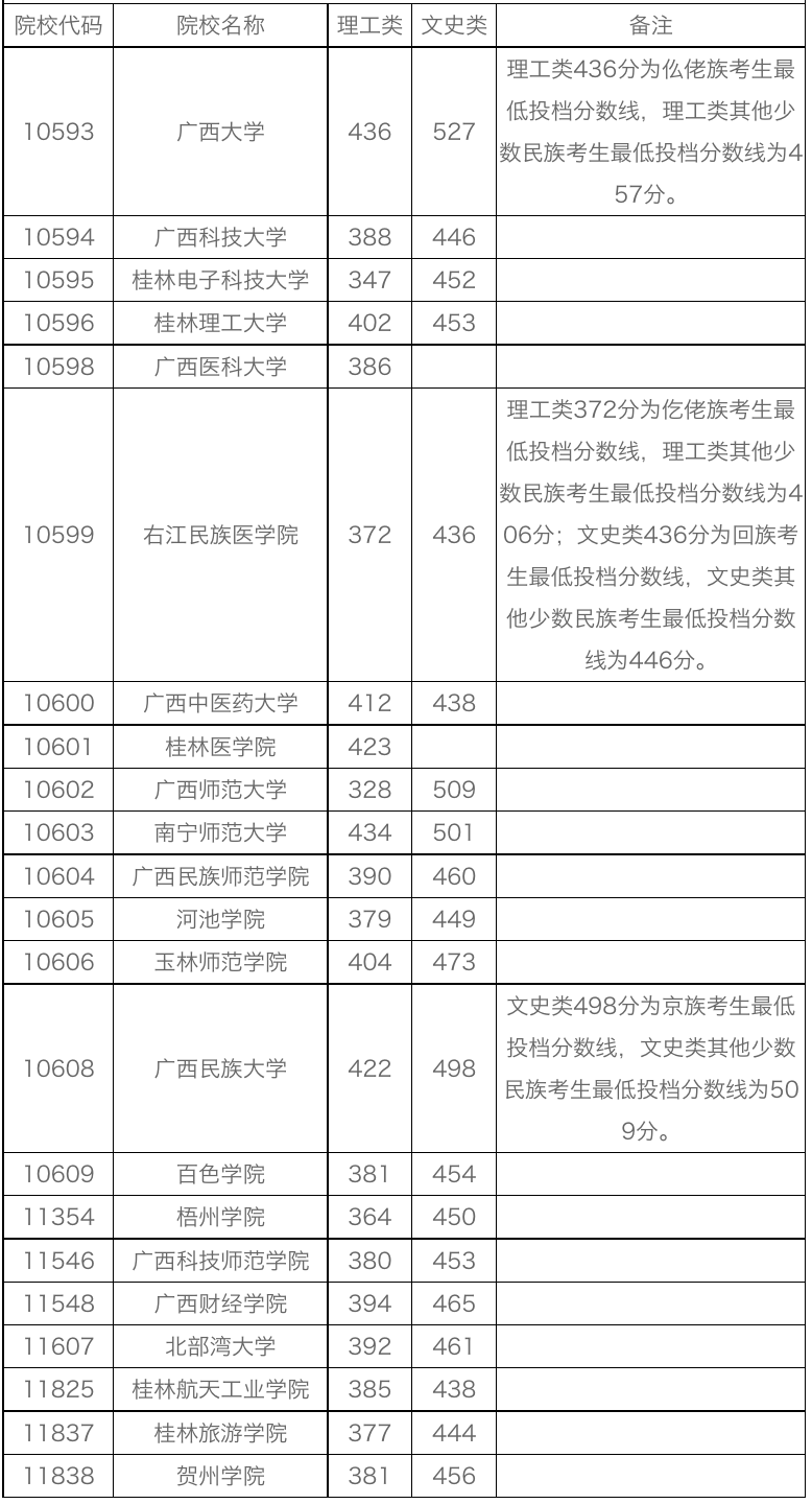 廣西2022年高考普招本科第二批預科A類最低投檔分數線公布