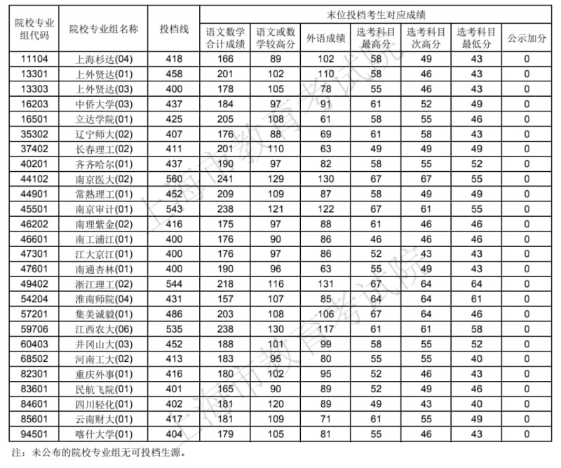 上海市2022年高考招生本科普通批次平行志愿院校專業(yè)組投檔分?jǐn)?shù)線公布