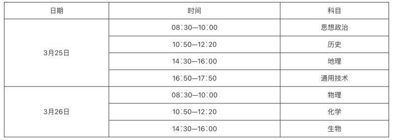 本次開(kāi)考思想政治、歷史、地理、通用技術(shù)、物理、化學(xué)、生物等7科,各科考試內(nèi)容及形式將依據(jù)《陜西省普通高中學(xué)業(yè)水平考試說(shuō)明》執(zhí)行??荚嚂r(shí)間安排如下: