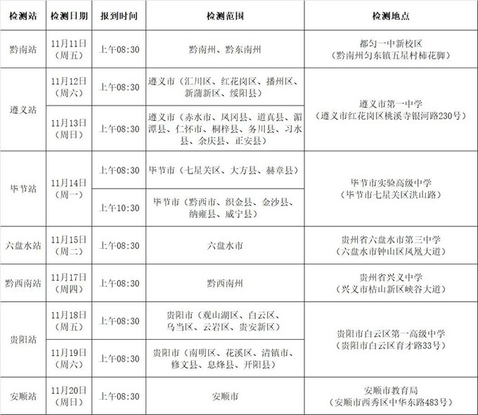 根據(jù)2023年度空軍招飛工作安排,2022年11月11日至11月20日,空軍招飛局成都選拔中心將派初選檢測(cè)組赴貴州省各地市組織初選檢測(cè),銅仁市初選檢測(cè)工作因受疫情影響另行通知,請(qǐng)及時(shí)關(guān)注學(xué)?;蚩哲娢髂险酗w微信公眾號(hào)通知。具體安排如下: