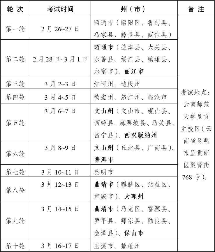 云南師范大學呈貢校區(qū)(地址:昆明市呈貢新區(qū)聚賢街768號),考生、涉考人員均從6號門進出校園。