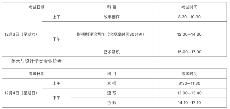 2023年上海市普通高校招生藝術(shù)類專業(yè)統(tǒng)一考試(編導(dǎo)類、美術(shù)與設(shè)計(jì)學(xué)類)將分別于2022年12月3日、4日舉行。具體安排如下:
