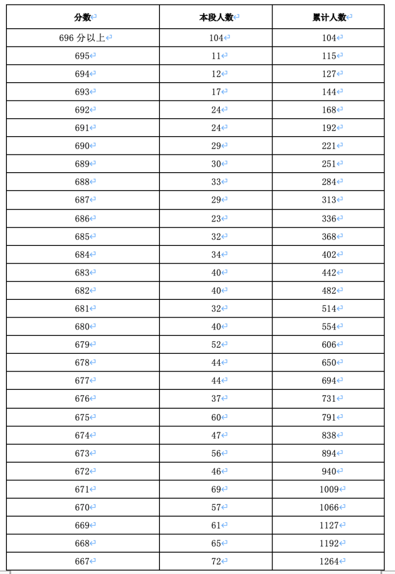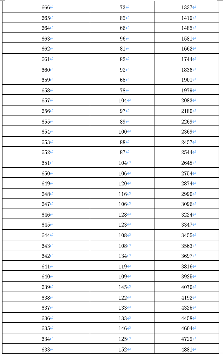 北京市2023年普通高考普通類考生成績一分一段表發(fā)布