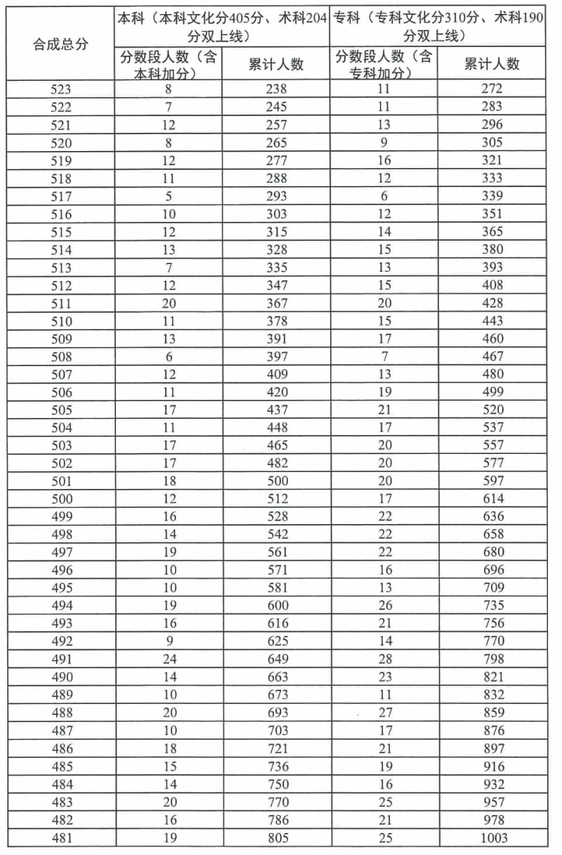廣東省2023年普通高考廣播電視編導(dǎo)類一分一段統(tǒng)計表發(fā)布