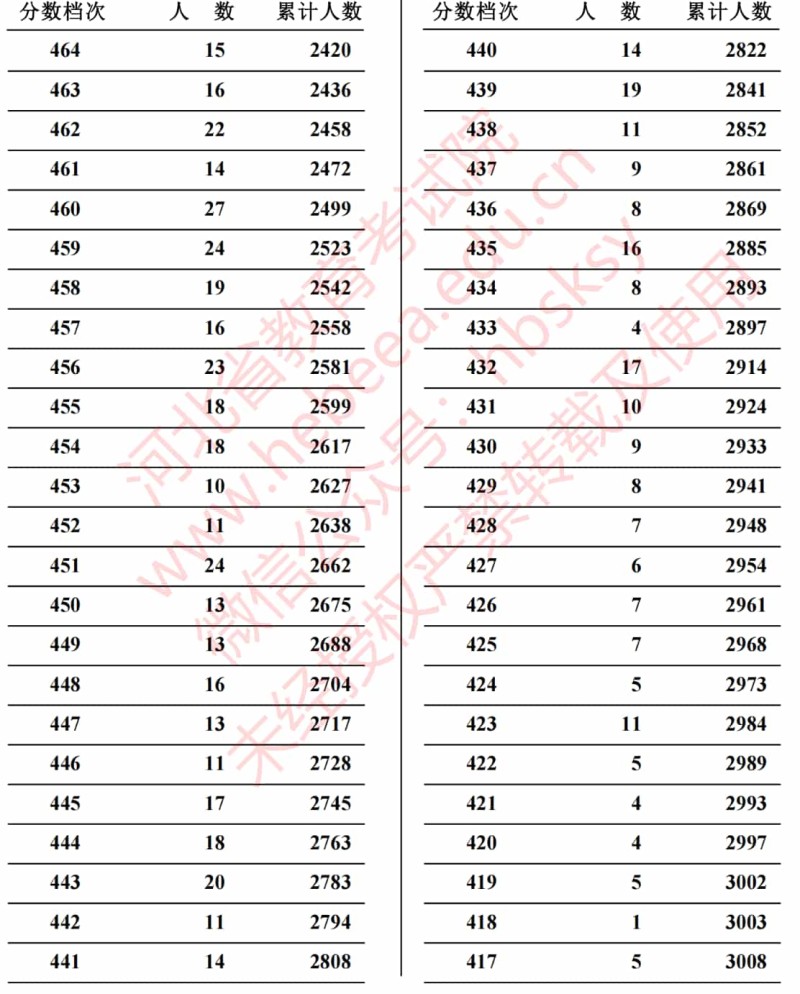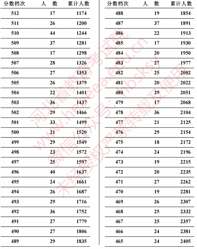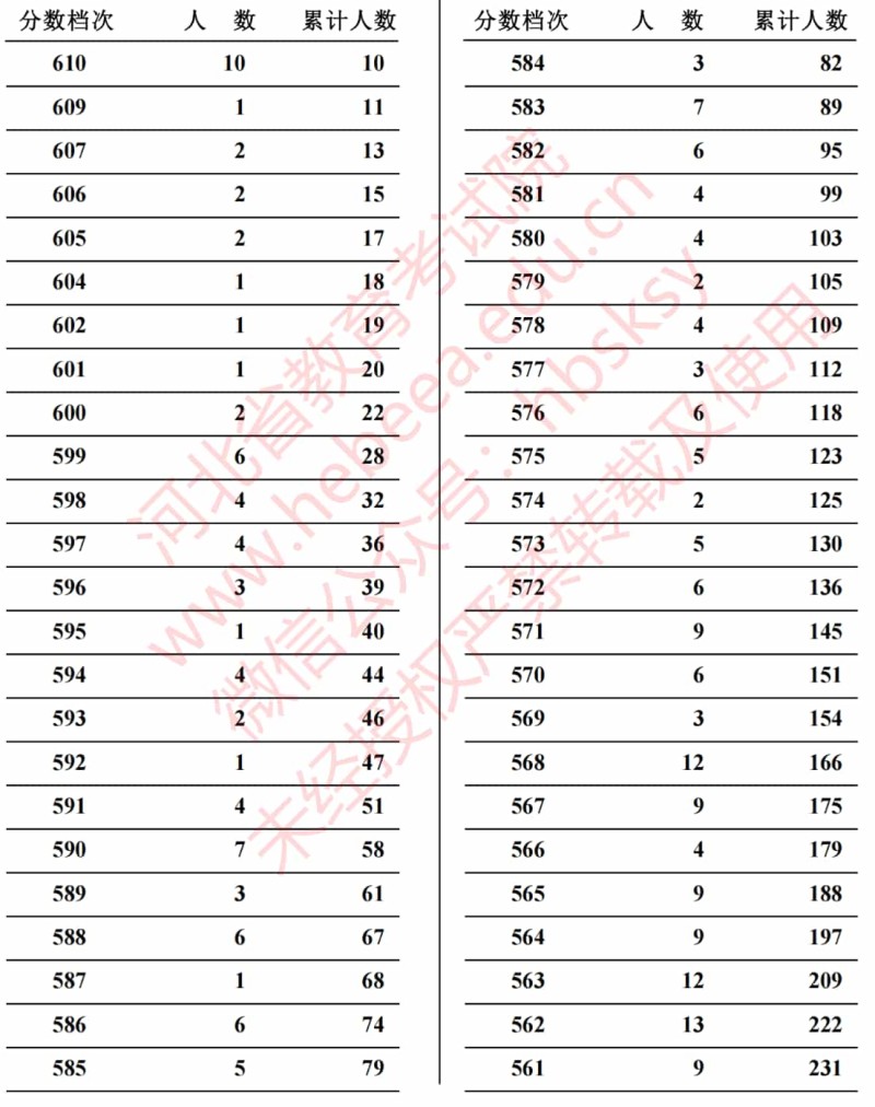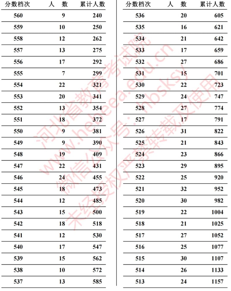 河北省2023年高考招生聲樂(lè)類(lèi)綜合成績(jī)一分一段統(tǒng)計(jì)表
