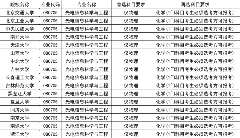 光電信息科學(xué)與工程專業(yè)高考報(bào)考選考科目要求