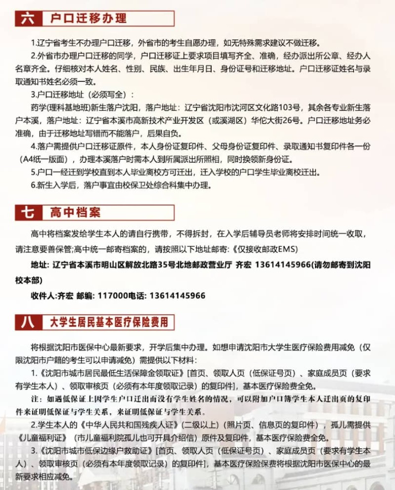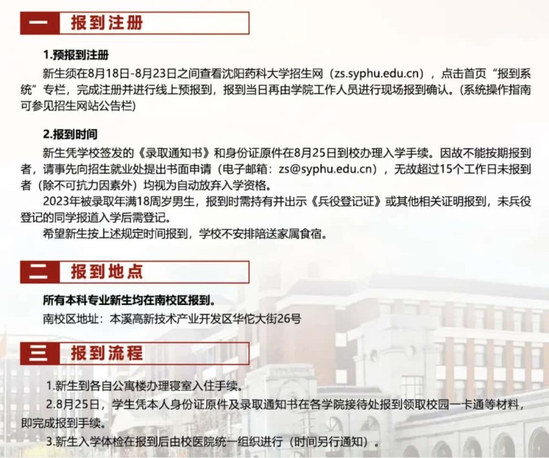 沈陽藥科大學(xué)2023年新生開學(xué)報到時間,報到需要準(zhǔn)備的材料有哪些?